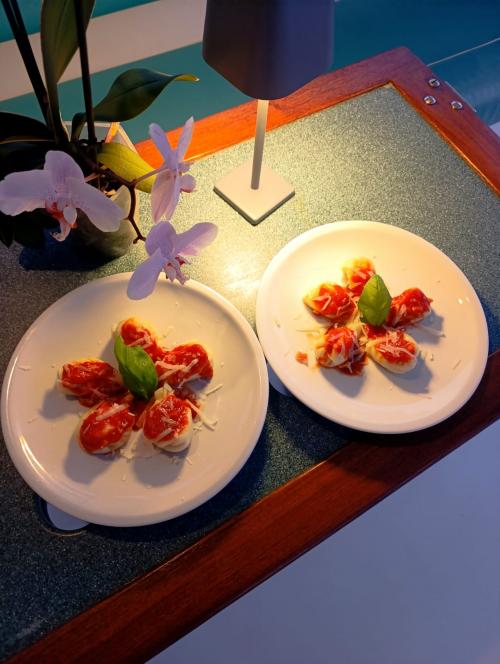 During the day, in addition to being lulled by the gentle motion of the sailboat and admiring picture-perfect views, you can enjoy a delicious aperitif with typical Sardinian products, followed by a lunch of local specialties, all accompanied by fresh Vermentino Prosecco and unlimited drinks.
